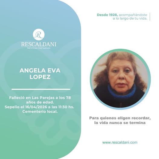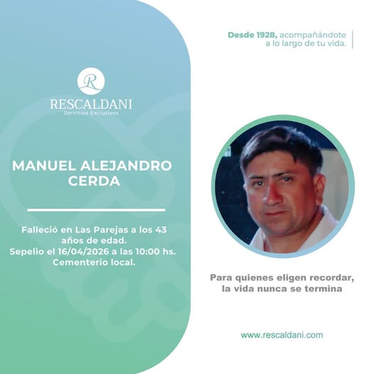 Sepelio 16/04/2026 10.00HS. Cementerio local.