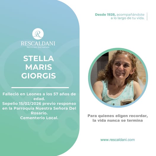 Sus restos serán sepultados el día DOMINGO 15 del Cte. previo responso a las 10:00 hs en la Parroquia Nuestra Señora Del Rosario.